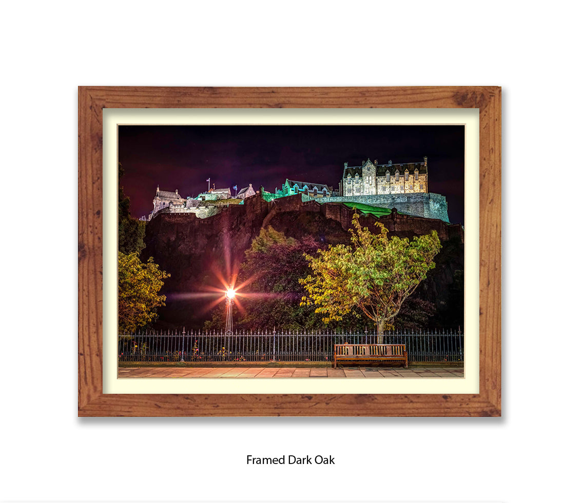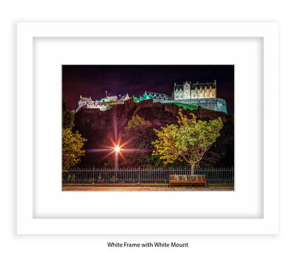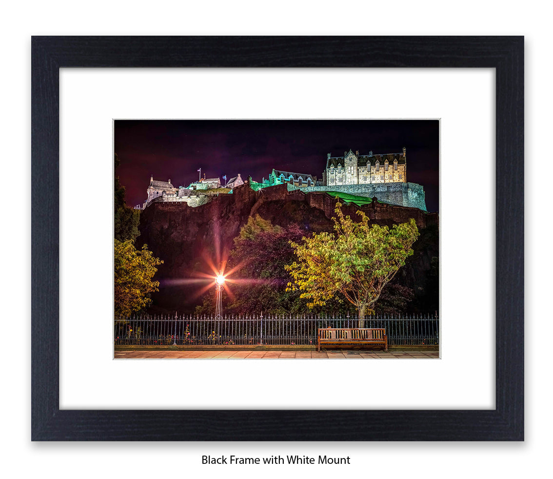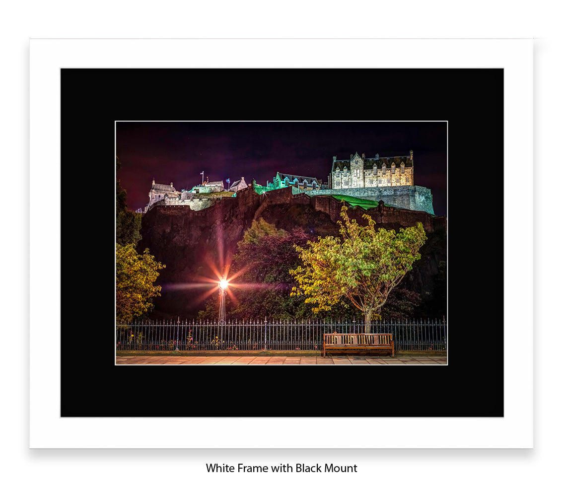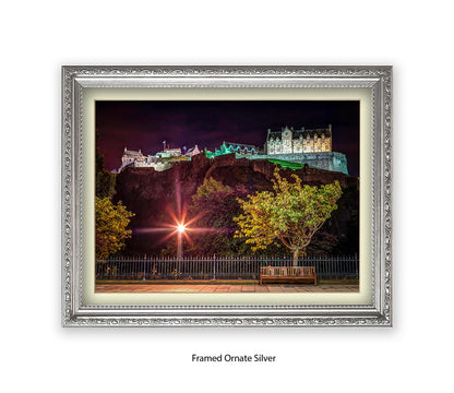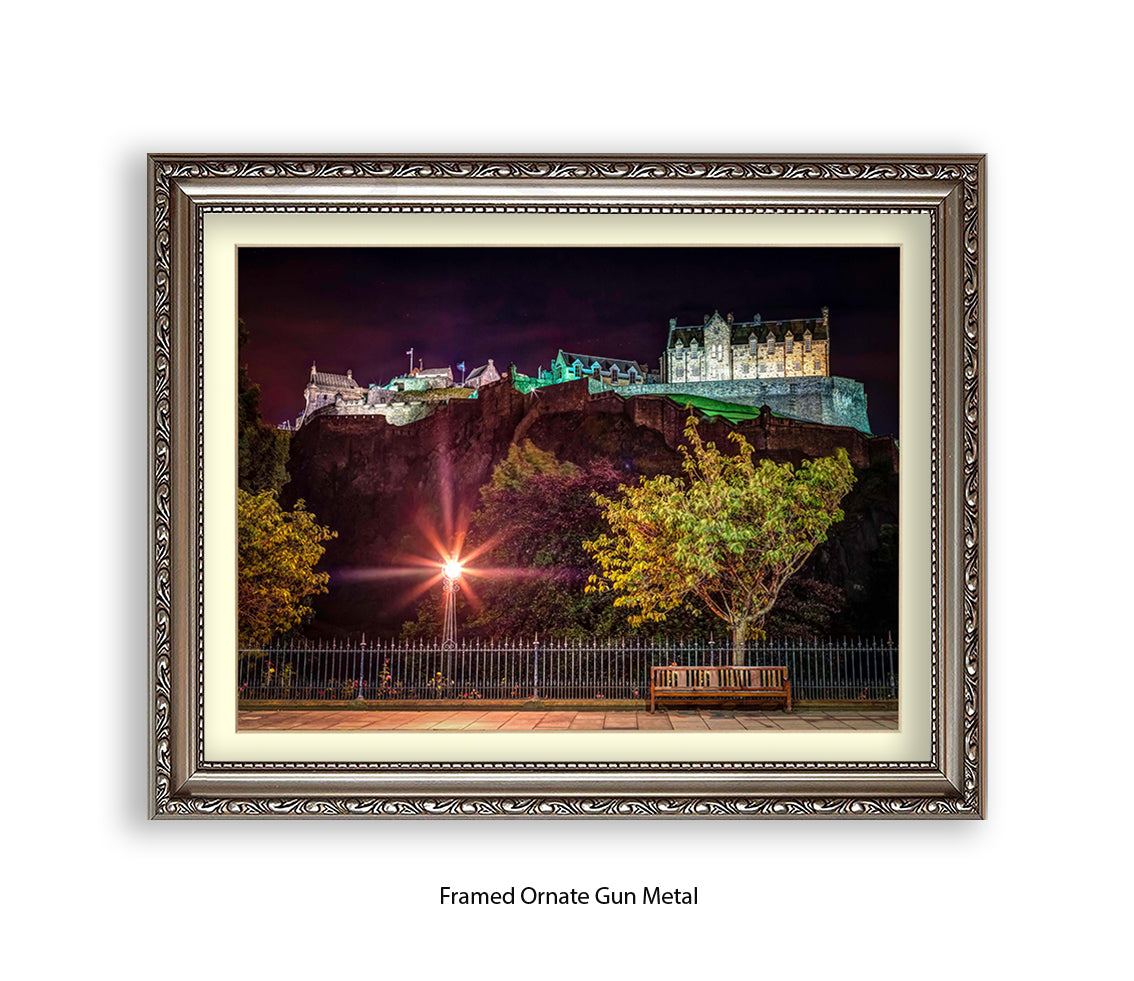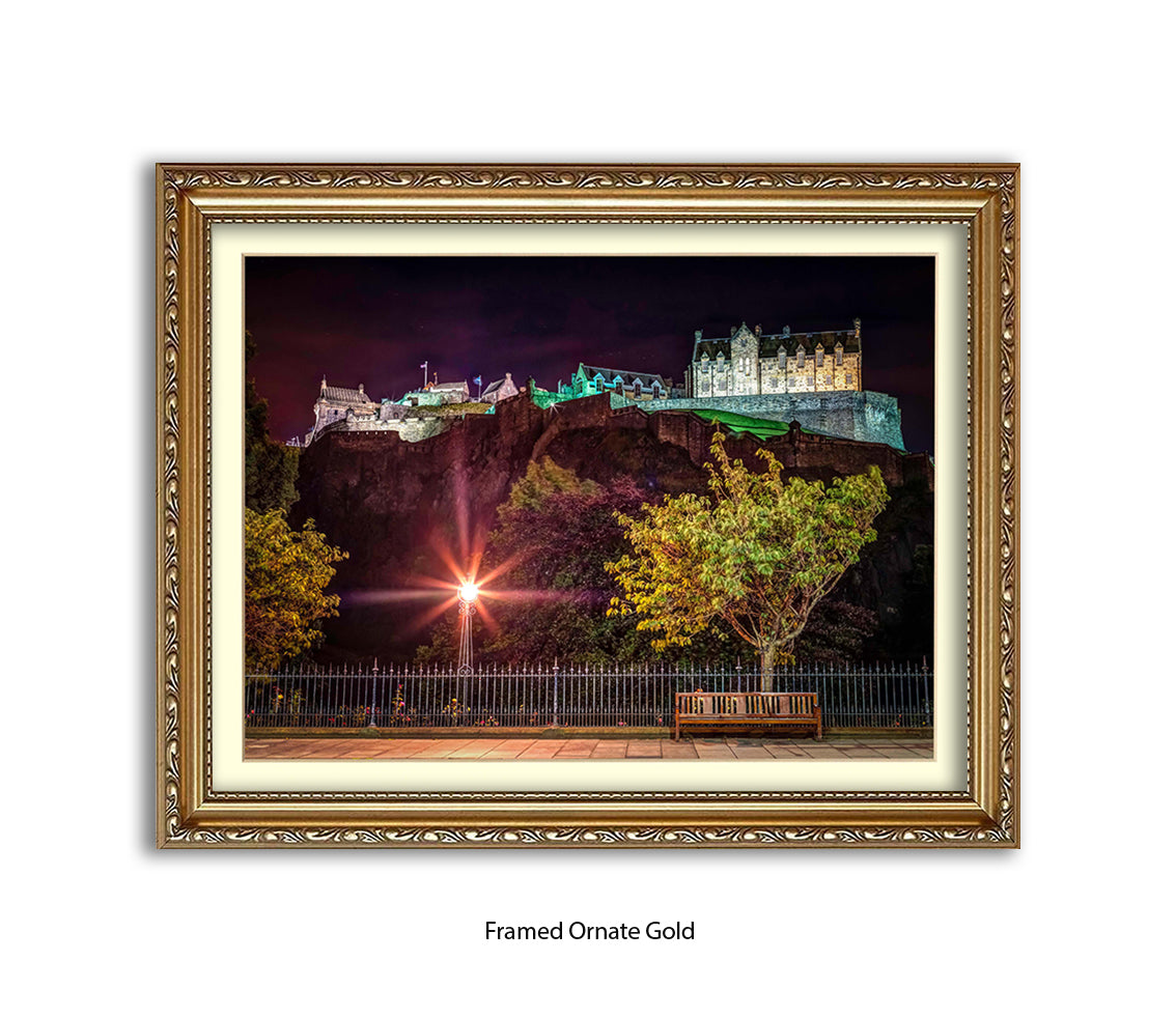 Edinburgh Castle At Night Park Bench - Assaf Frank Art Print