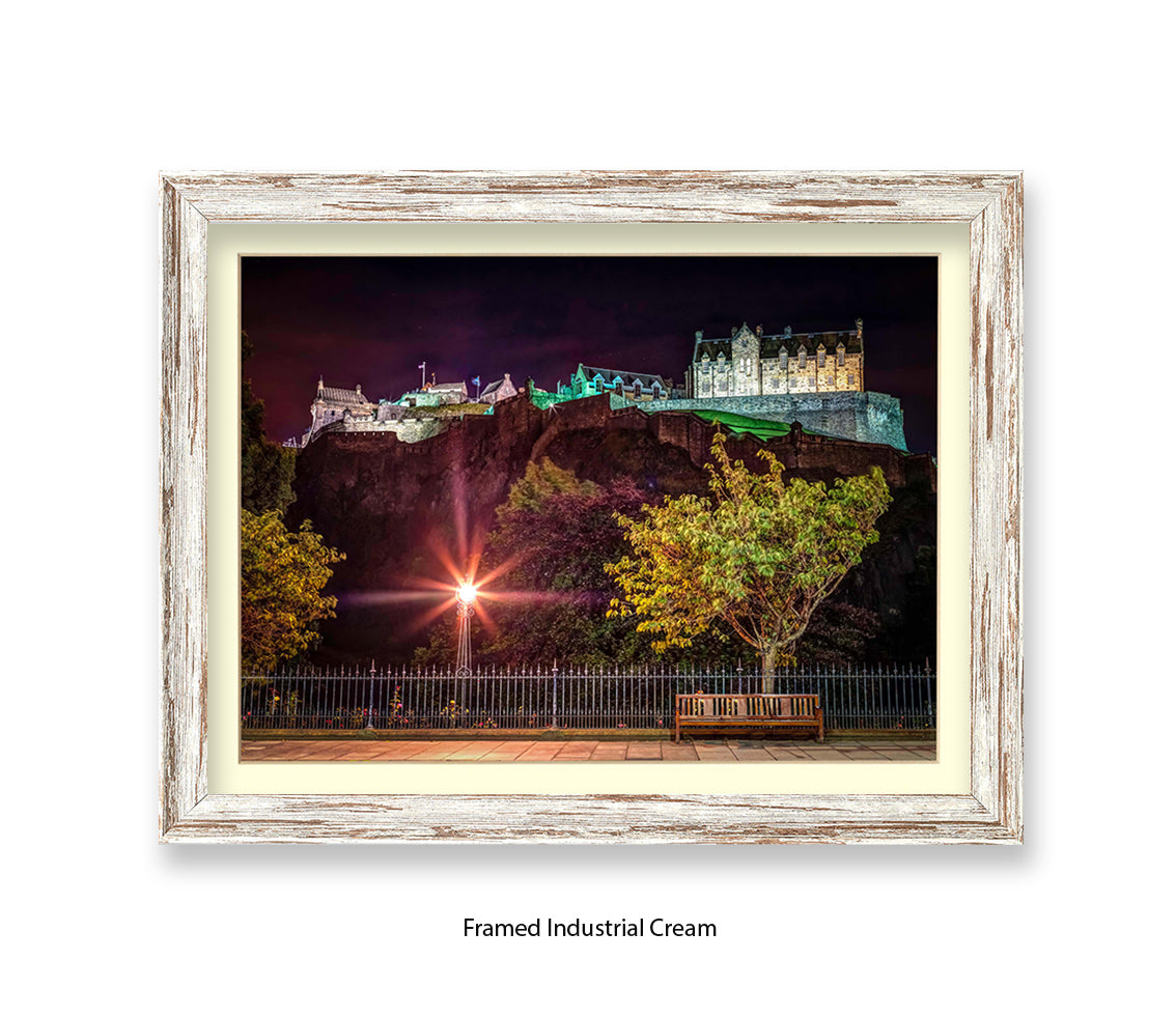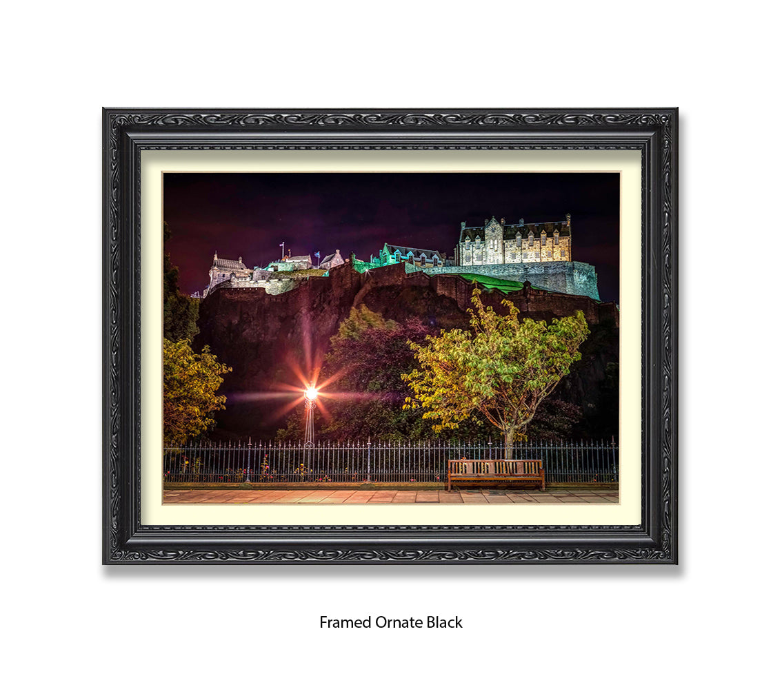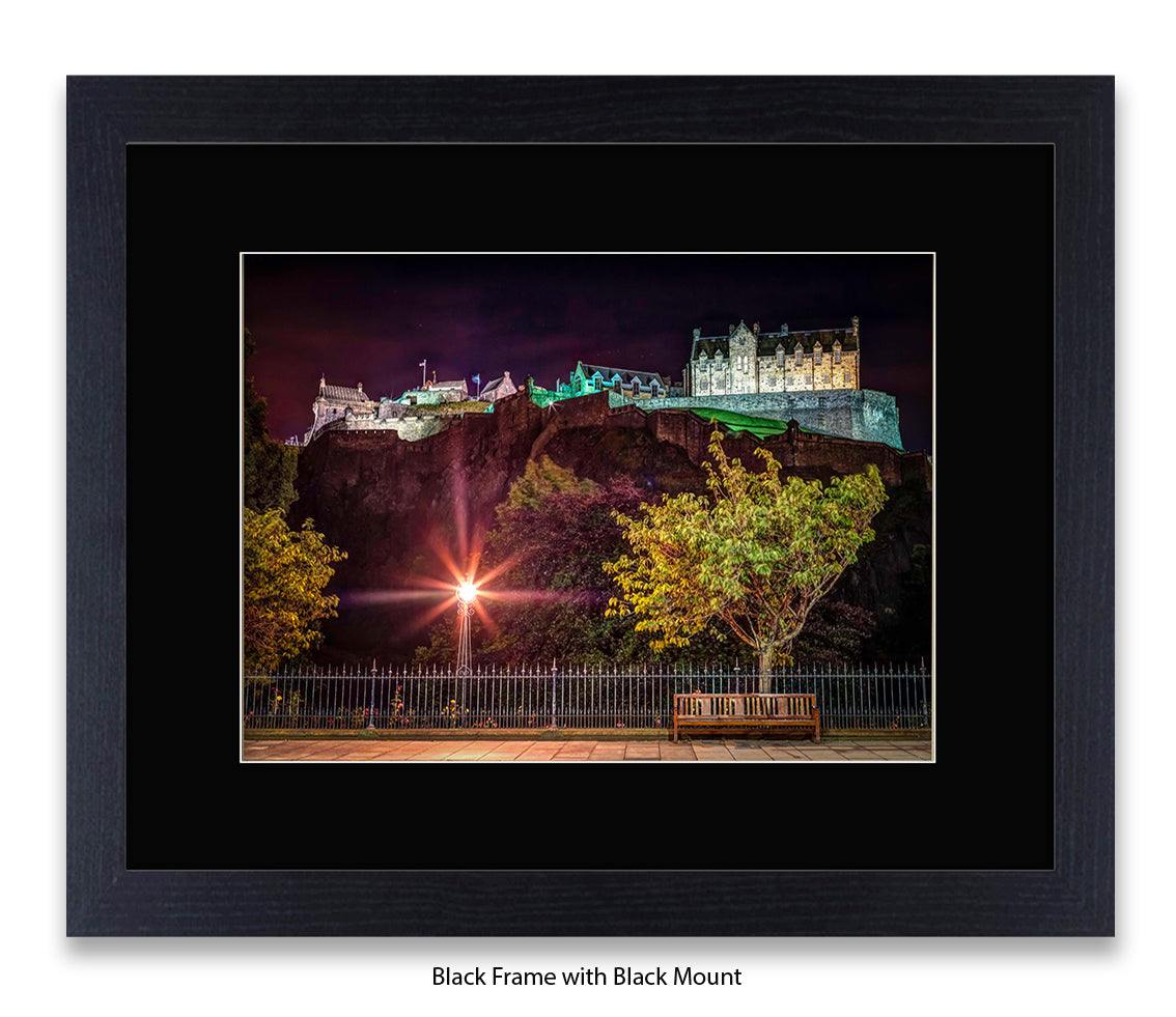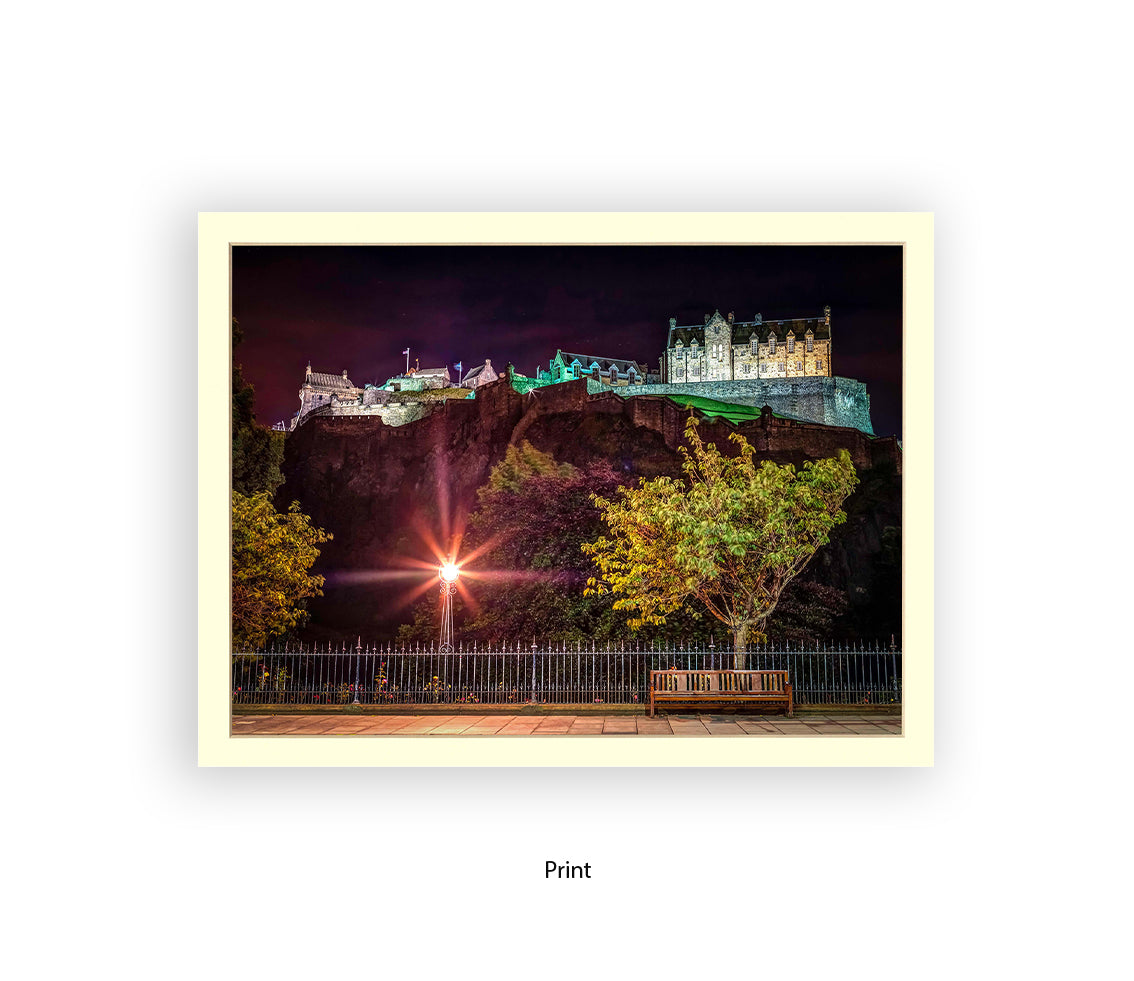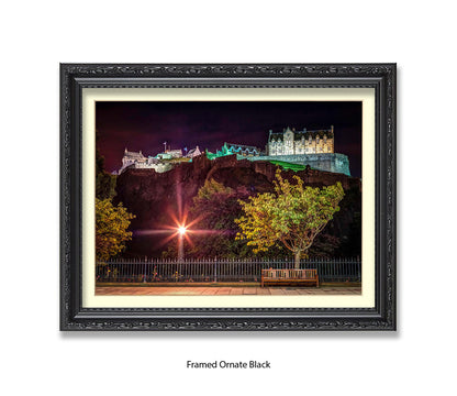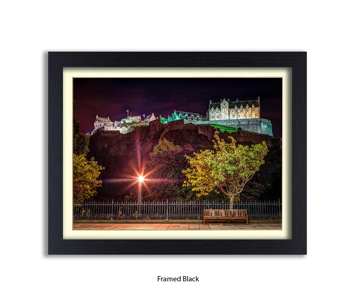 Edinburgh Castle At Night Park Bench - Assaf Frank Art Print