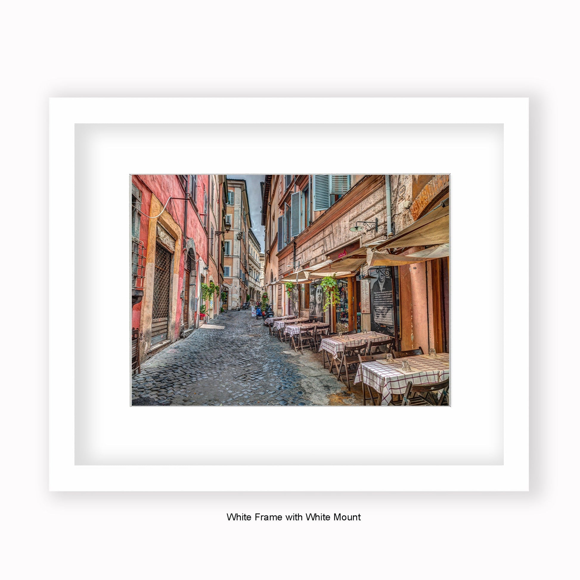 Italy - Rome - Street Scene Cafe - Mounted & Framed Art Print