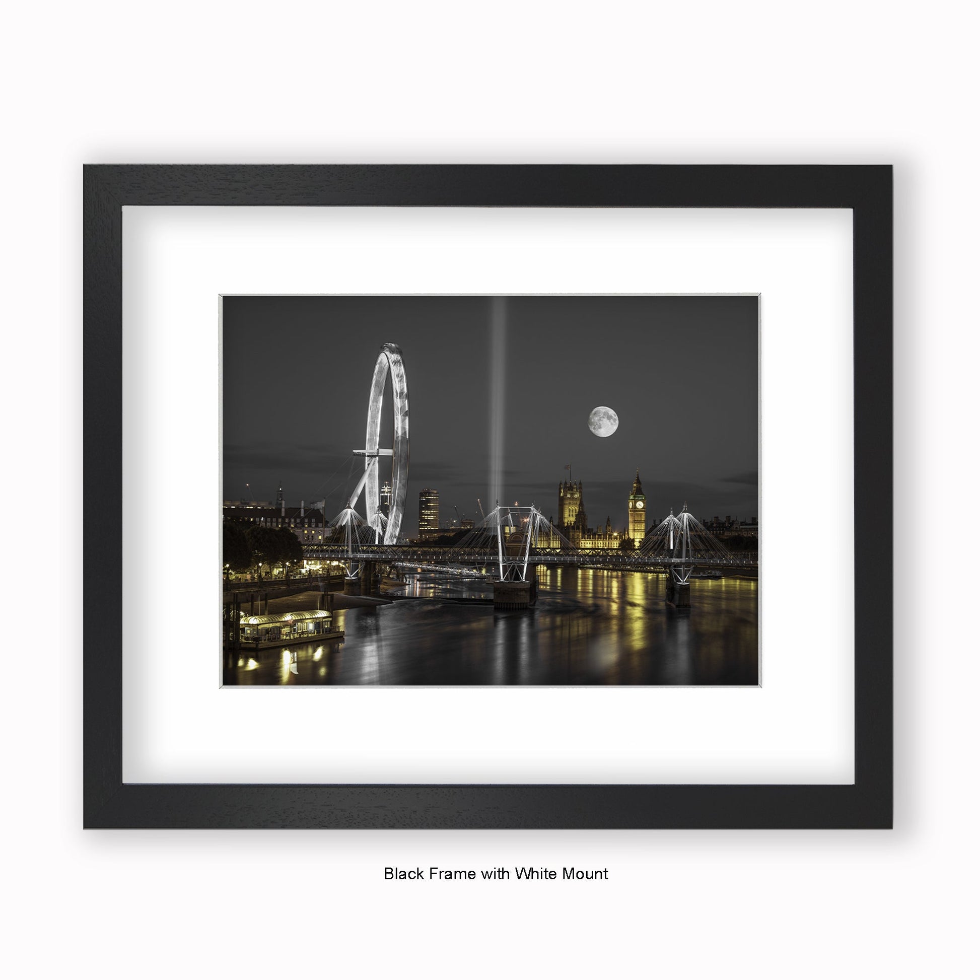 London - Big Ben & London Eye Moon - Mounted & Framed Art Print