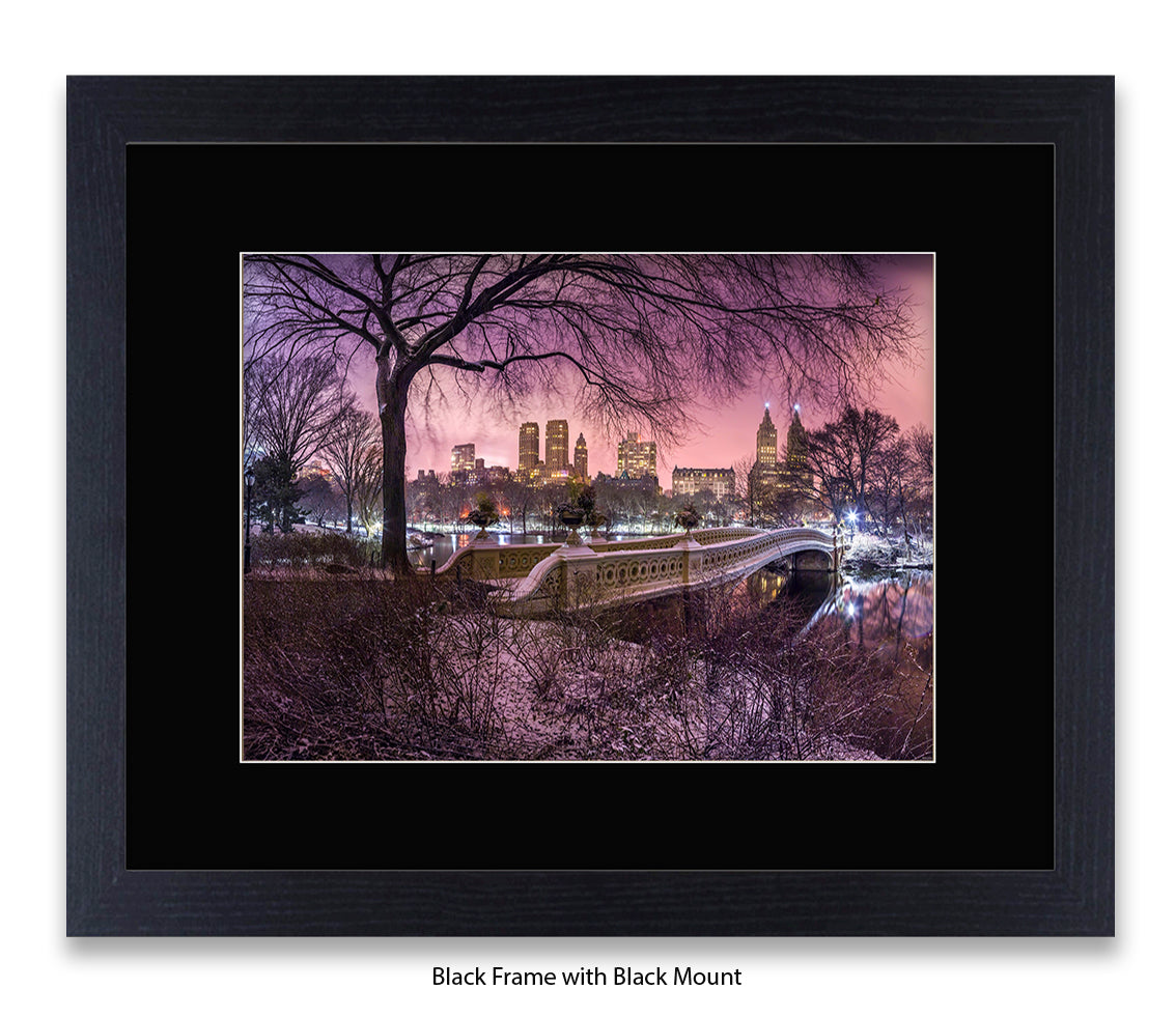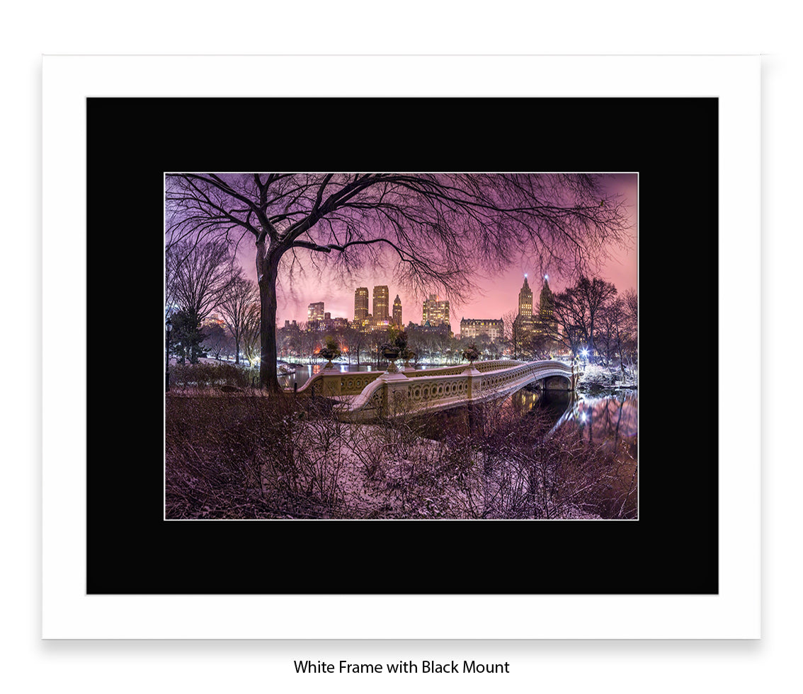 NYC Central Park & Manhattan Skyline - Red Sky - Mounted & Framed Art Print